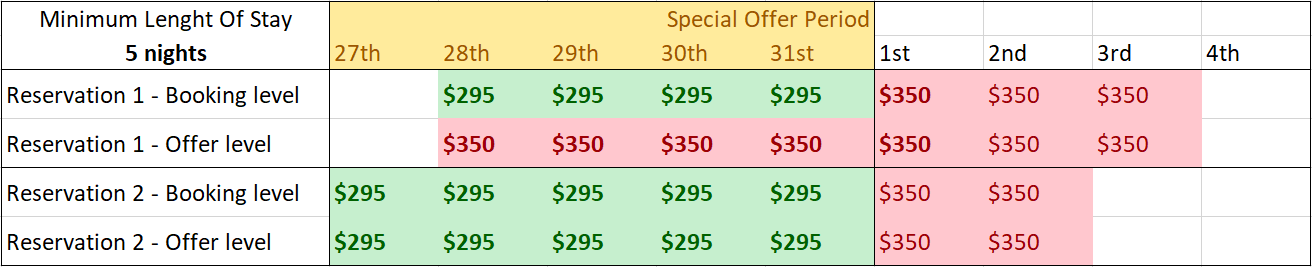 - "Booking level: At least ONE of the minimum stay nights must occur WITHIN the Special Offer period."