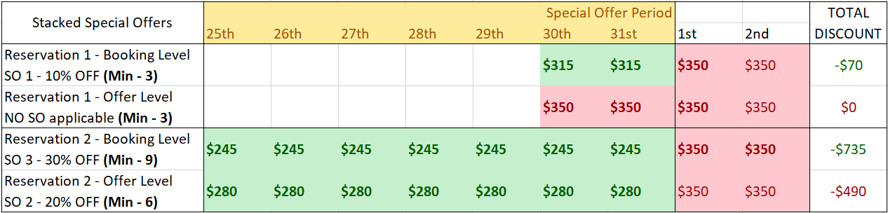 - "Offer level: ALL minimum stay nights must occur WITHIN the Special Offer period."